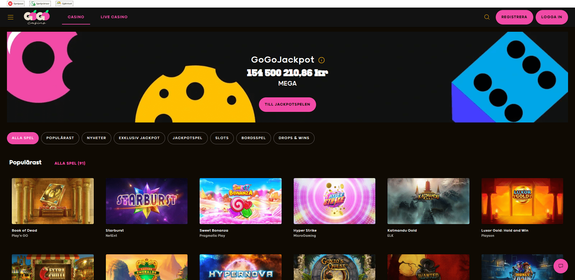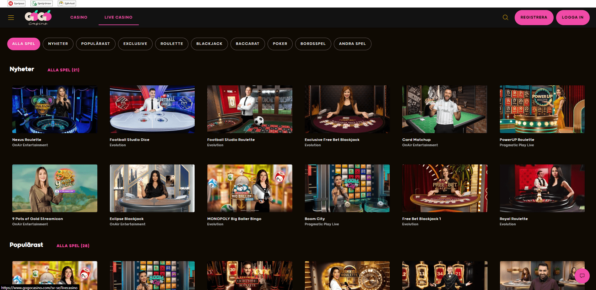 Utöver välkomsterbjudandet har GoGo Casino myket som talar för sig. Inte minst deras stora utbud av slots, bordsspel och live casino spel. Du kan snurra på allt från klassiker till nya titlar och även testa livebord som blackjack och roulette.